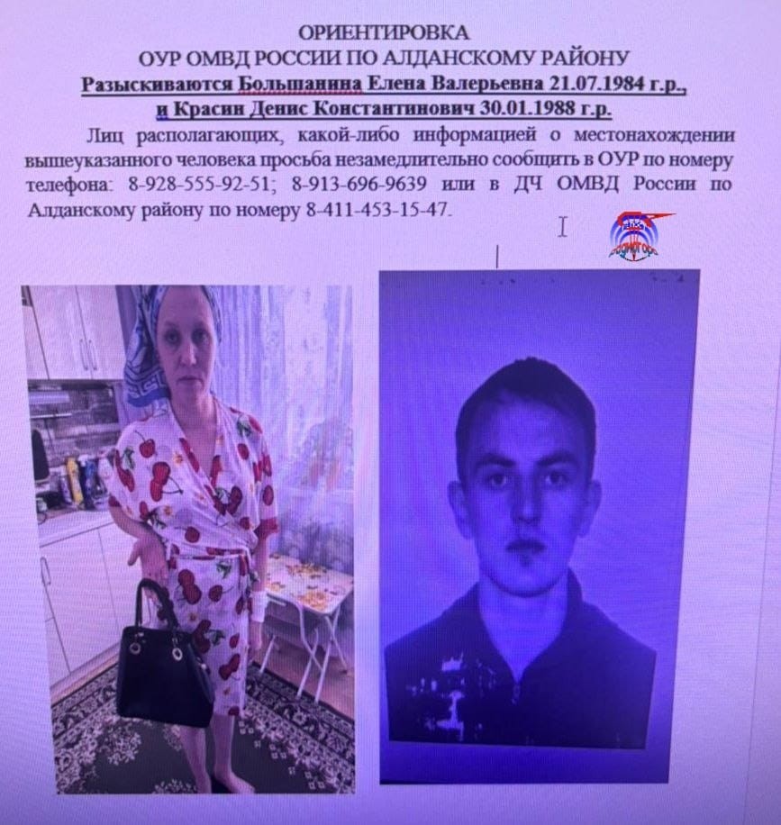 Только что Sakhapress сообщили, что оперативниками уголовного розыска Отдела МВД России по Алданскому району разысканы 41-летняя и 37-летний сожители, подозреваемые в жестоком обращении с ребенком.
