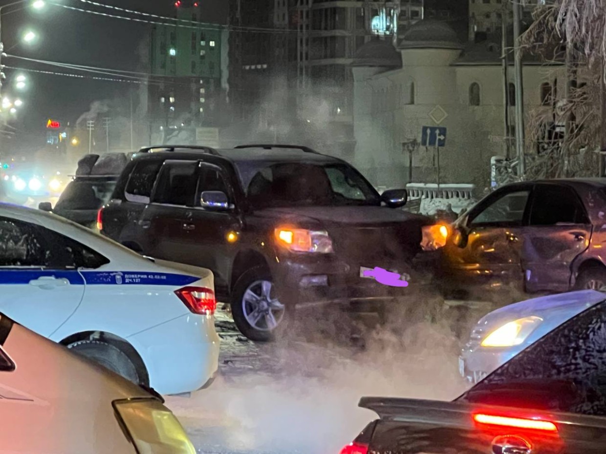 В Якутске водитель на "Ленд Крузере" проехал на красный свет, столкнулся с двумя машинами и сбил пешехода