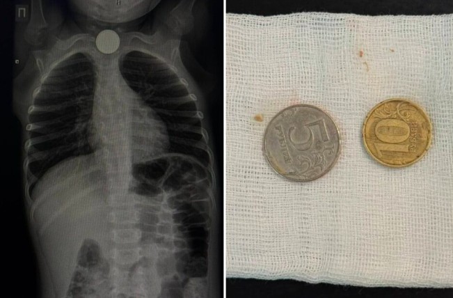 «Родители обратились в больницу в тот же день, когда ребенок проглотил монеты. Инородные тела были обнаружены в верхней трети пищевода. Операция прошла успешно, сложностей при извлечении монет не возникло. После операции ребёнок в удовлетворительном состоянии остался под наблюдением в хирургическом отделении», — рассказала Мария Еремеева.