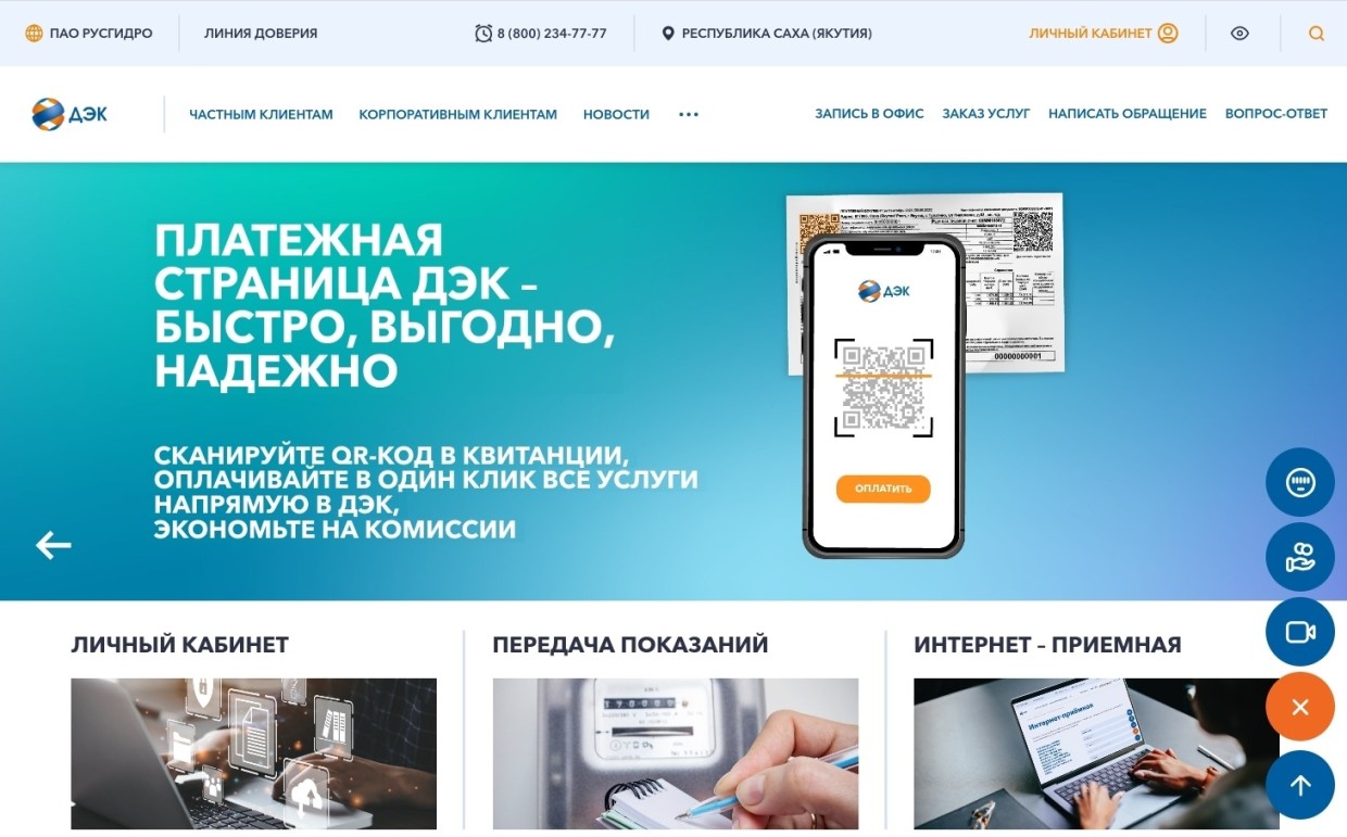 - в Личном кабинете и мобильном приложении ДЭК Якутия,