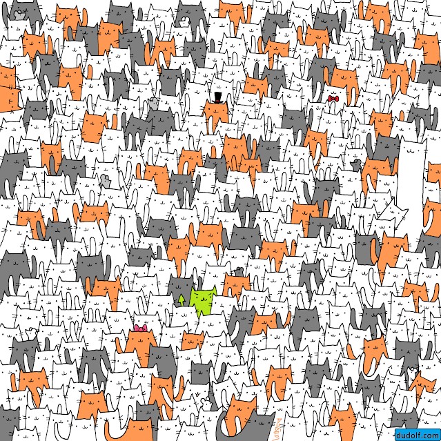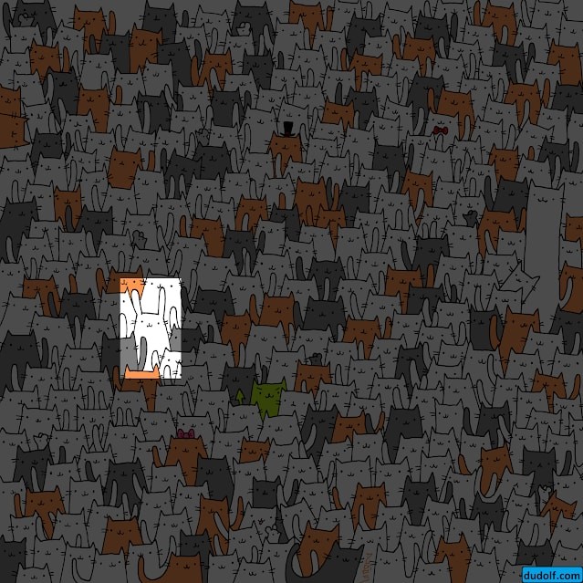 На этой картинке ничего сложного нет. Просто найдите зайца среди котов.