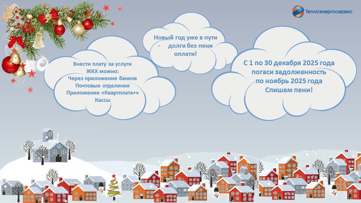 АО «Теплоэнергосервис»(дочернее общество ПАО «Якутскэнерго» входит в Группу РусГидро), одна из ведущих энергетических компаний региона, напоминает о возможности списать накопившиеся пени в рамках декады «Новый год уже в пути — долг без пени оплати!».