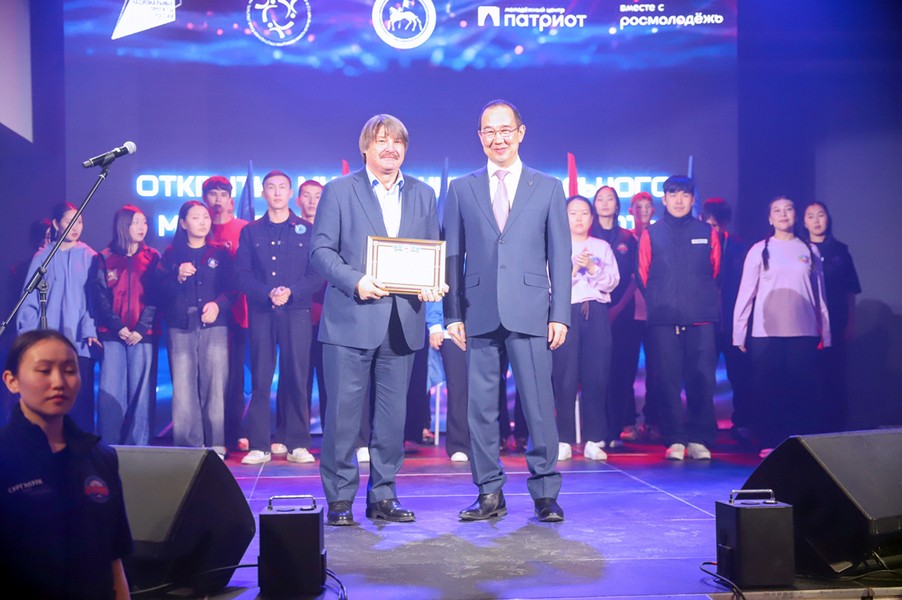 Глава Якутии вручил благодарственное письмо коллективу АО «АК «ЖДЯ» на открытии молодежного центра «Патриот»