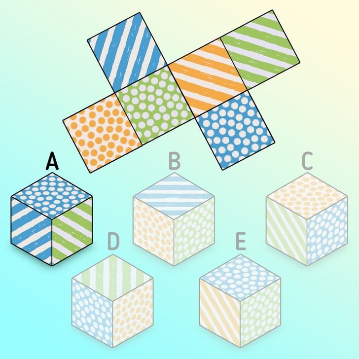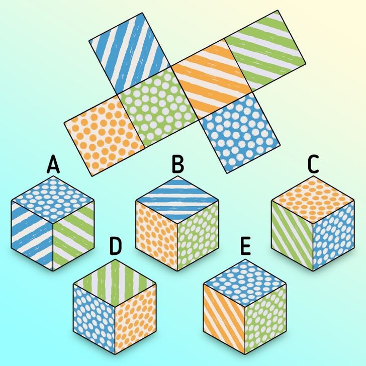 Посмотрите на картинку и определите: какой куб не образован от этой фигуры?