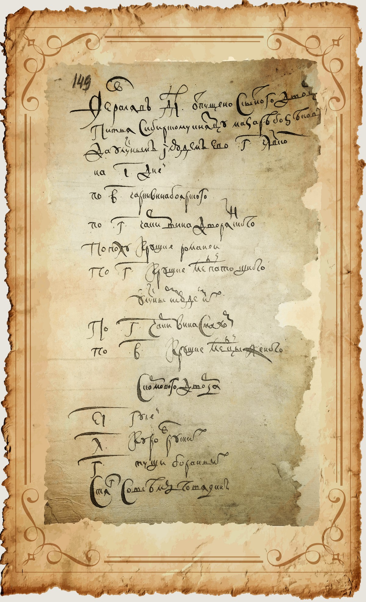 А в сибирской тоболской в проезжей за приписью дьяка Григорья Михайлова написано: отпущены ис Тоболска к великому государю к Москве якутцкие князцы Нокто с товарыщи, 3 человека, да людей их 6 человек, а для береженья и проезду по городом посланы с ними в провожатых тоболские конные казаки Федка Микляев с товарыщи, 9 человек, да якутцкие казаки Корнилко Онкудинов, Федотко Колмак, да толмач Максимко Мухоплев. А великого государя жалованья корму дано тем князцом и людем их от Тоболска в дорогу до Верхотурья на две недели Нокте с товарыщи, 3 человеком: по 2 алтына, по 3 чарки вина, по 3 крушки пива; людем их 6 человеком: по 6 день на день человеку по […] чарки вина, по 2 крушки пива. А с Верхотурья до Москвы поденно корм и питье имать им, Федке Микляеву с товарыщи, по городом у столников, и у воевод, и у дьяков, и у всяких приказных людей от города до города против того ж.