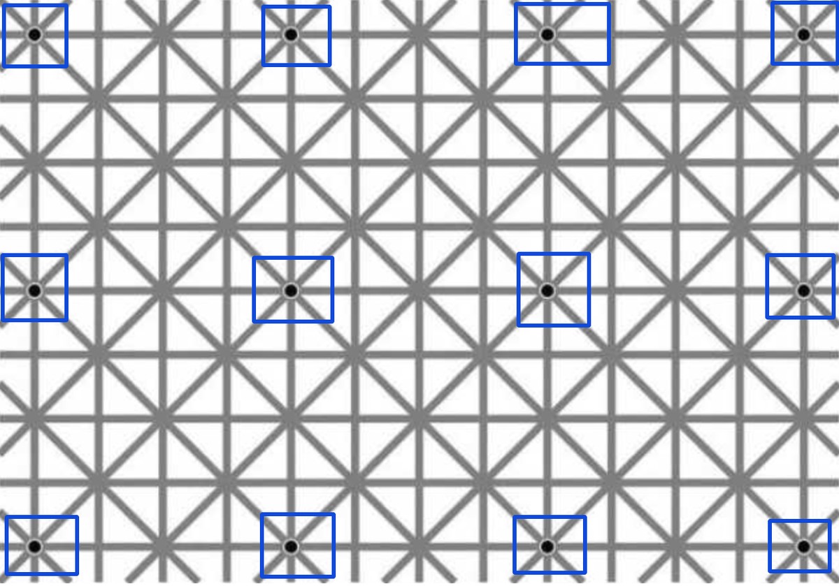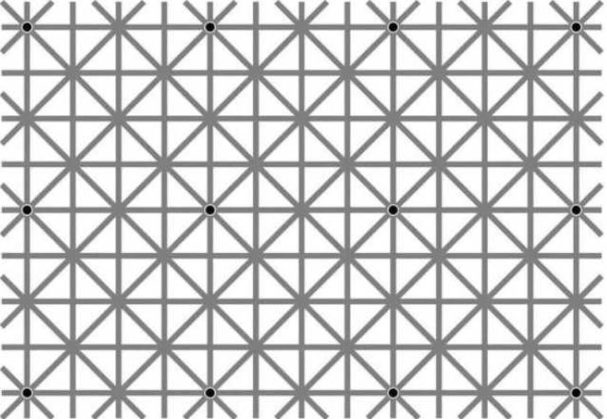 На этой картинке не так просто сразу заметить все черные точки. Вам придется сосчитать их по одной — всего их 12. Вот они, все черные точки.