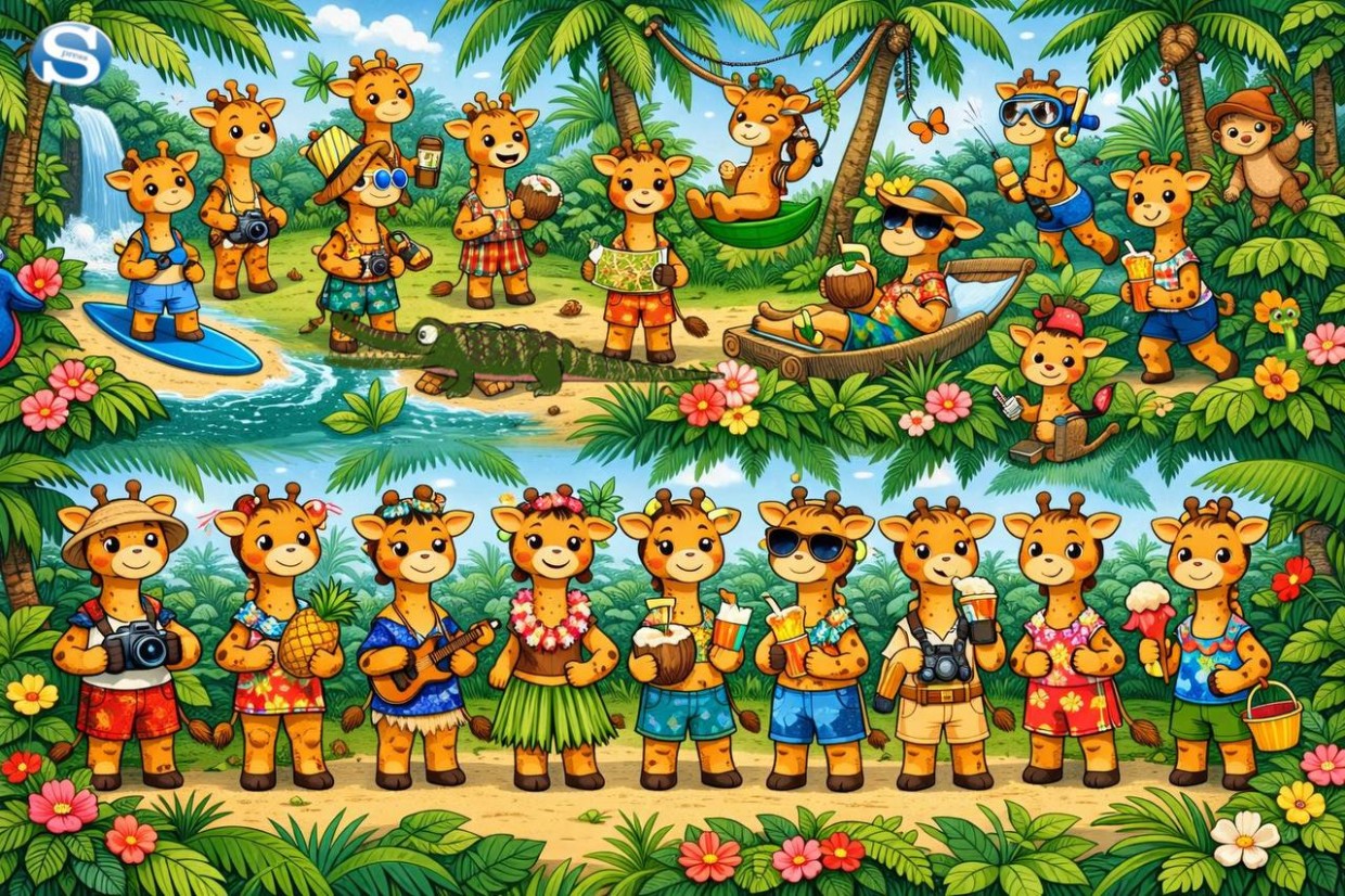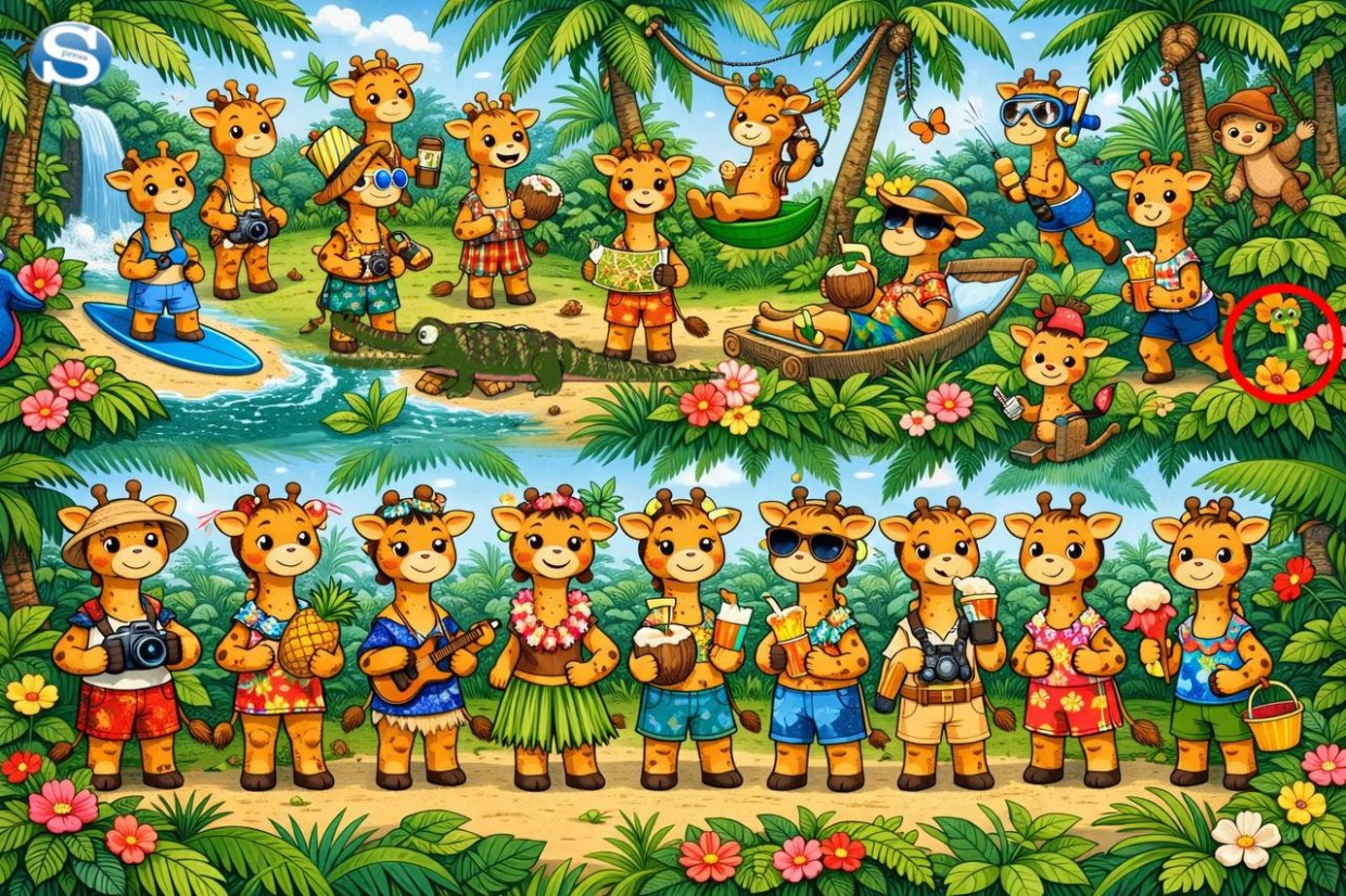 Готовы к быстрому и увлекательному испытанию? Перенеситесь в сердце пышного тропического леса, полного жизни и красок! На этой яркой и детализированной картинке резвятся жирафы, обезьянки и даже крокодил. Но среди этого буйства жизни притаился один очень хитрый обитатель — змея.