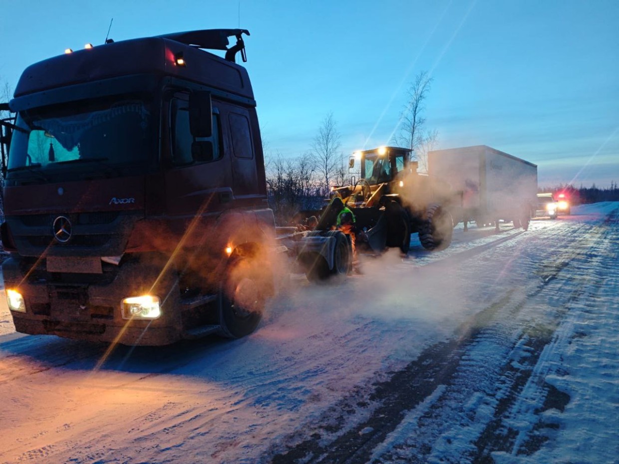 Инспекторы ГИБДД спасли замерзающего дальнобойщика с отказавшими тормозами в Якутии