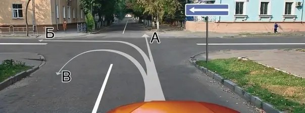 Знак 5.7.2 «Выезд на дорогу с односторонним движением» запрещает поворот направо, т.е. встречное движение. Разрешённые направления движения на таком пересечении – прямо, налево (в направлении стрелки на знаке) и разворот. Можете продолжить движение в любом направлении из указанных. («Дорожные знаки»)
