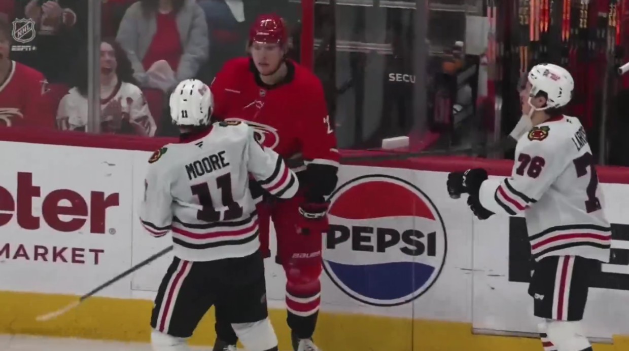 Защитник «Каролины» Александр Никишин стал главным героем жёсткого эпизода в матче против «Чикаго». Российский хоккеист за 15 секунд нейтрализовал сразу двух соперников, продемонстрировав силу и решительность.