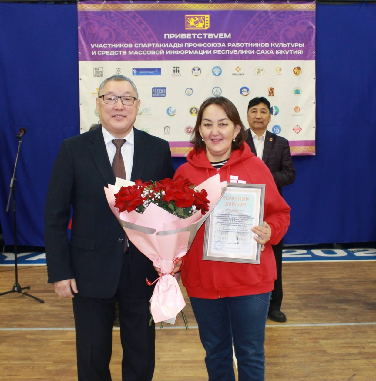 Председатель Федерации профсоюзов РС(Я) Дегтярев Николай Николаевич в своей приветственной речи особо подчеркнул значимость Спартакиады профсоюза работников культуры РС(Я) как уникального мероприятия, которое объединяет работников отрасли культуры и демонстрирует силу профсоюзного движения через призму здорового образа жизни. В завершение своего выступления Дегтярёв Н. Н. вручил Почётный диплом Федерации независимых профсоюзов России Первичной профсоюзной организации Государственного театра эстрады РС(Я) им. Ю. Е. Платонова.