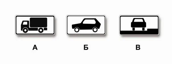 Таблички 8.4.1 (А) и 8.4.3 (Б) «Вид транспортного средства» распространяют своё действие: «А» – на грузовые автомобили, в том числе с прицепом, с р.м.м. более 3,5 т, «Б» – на легковые автомобили, а также грузовые автомобили с р.м.м. до 3,5 т. Табличка 8.6.1 (В) «Способ постановки транспортного средства на стоянку» распространяет действие знака 6.4 «Парковка (парковочное место)» на ВСЕ транспортные средства. Поэтому только таблички «Б» и «В» касаются грузовых автомобилей, р.м.м. которых не более 3,5 т. («Дорожные знаки»)