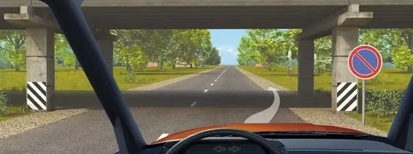 В указанном месте стоянка запрещена знаком 3.28 «Стоянка запрещена», действие которого распространяется до ближайшего перекрёстка. Путепровод не может прекращать действие данного знака. («Дорожные знаки»)