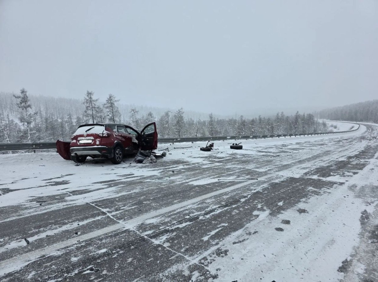 Водитель (1965 г.р.), управляя автомобилем "Рено Каптур", не учел дорожные и метеорологические условия, не выбрал безопасную скорость для движения и совершил выезд на полосу, предназначенную для встречного движения, на закрытом правом повороте со стороны Алдана в сторону Нерюнгри. В результате этого произошло столкновение с "Тойотой Ленд Крузер Прадо", под управлением водителя (1995 г.р.).