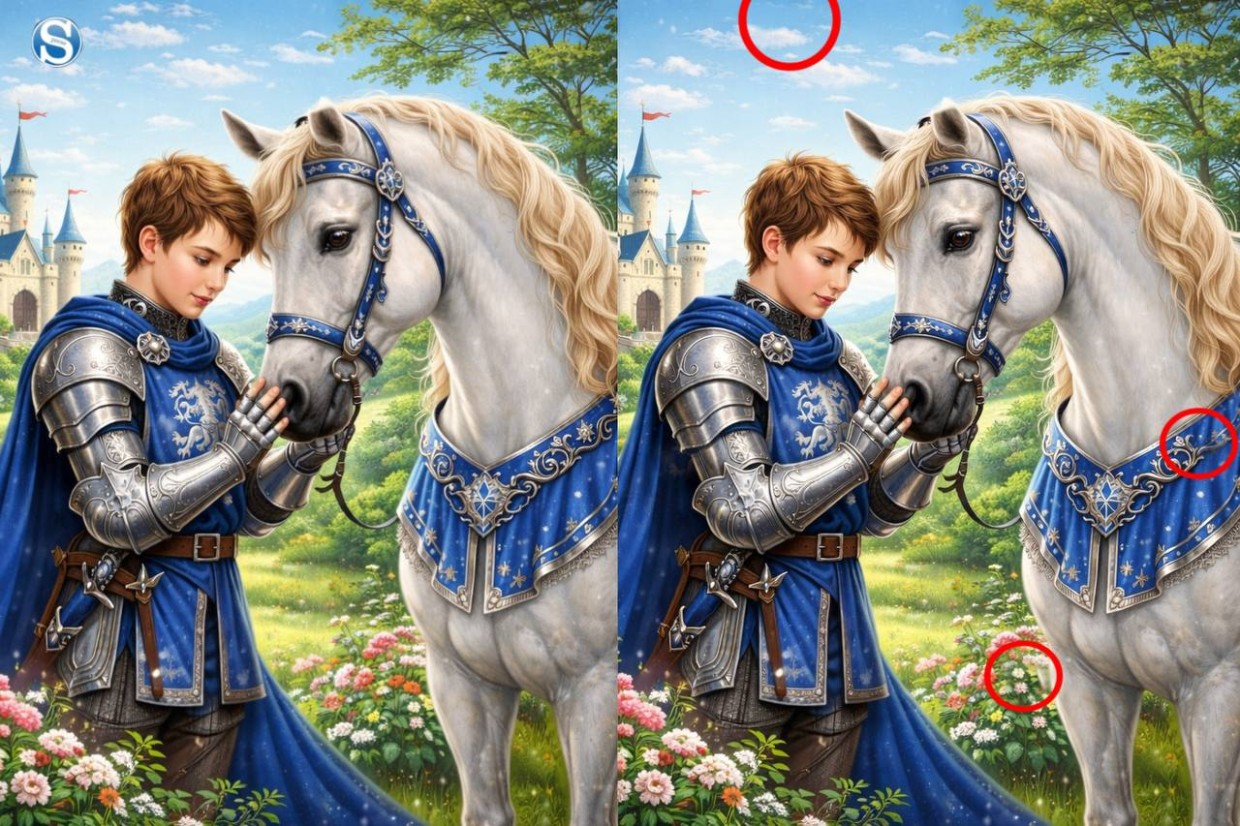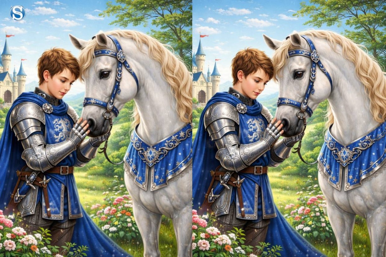 Рыцарский вызов: найдите 3 отличия на картинках с юным рыцарем и лошадью за 10 секунд!