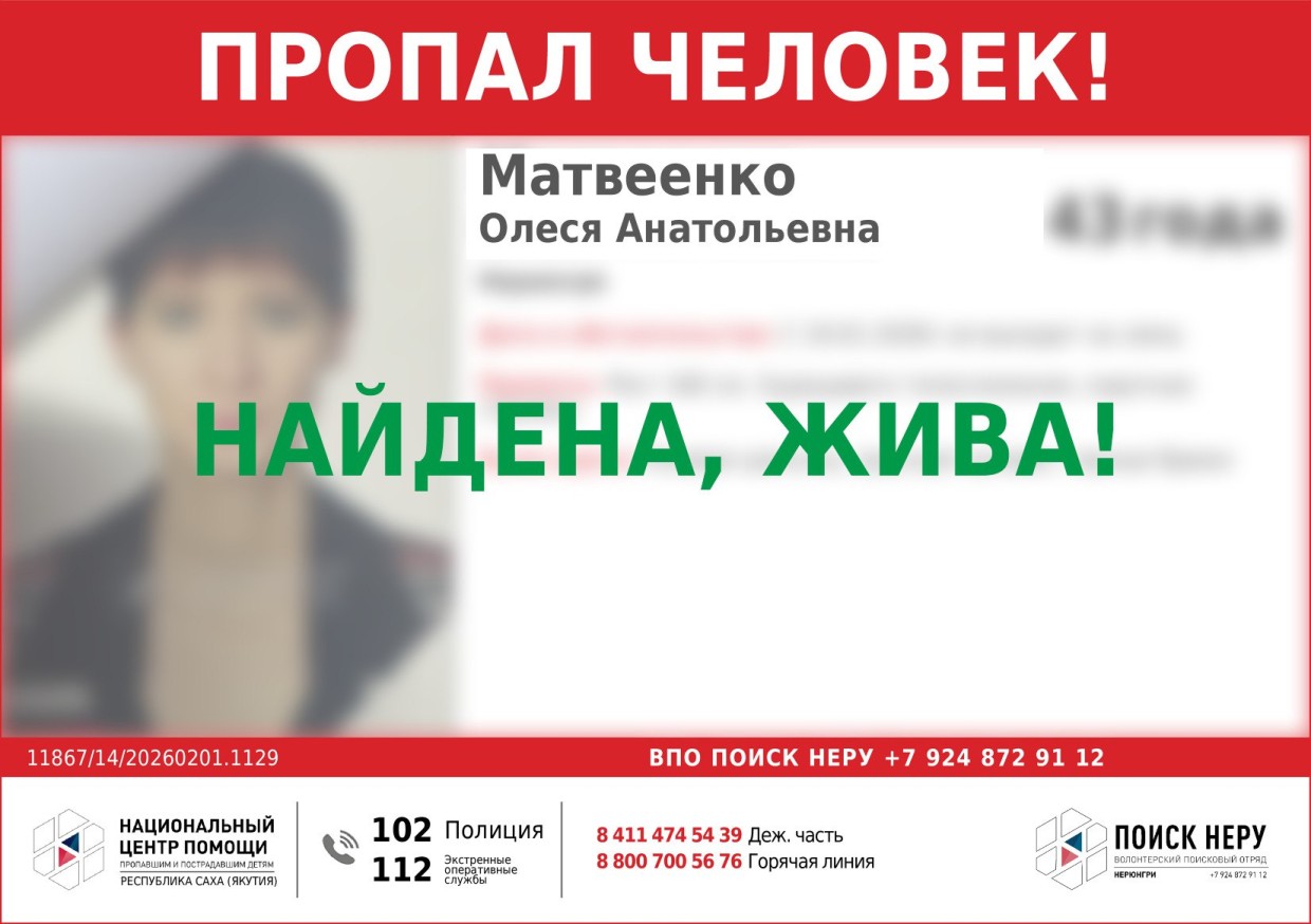Информацию о пропавшей без вести Sakhapress подтвердили в республиканском мониторинговом Центре помощи пропавшим и пострадавшим.