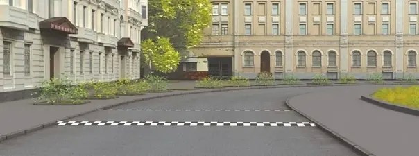 Горизонтальная разметка 1.25 обозначает искусственную неровность на проезжей части (так называемый «лежащий полицейский»).
