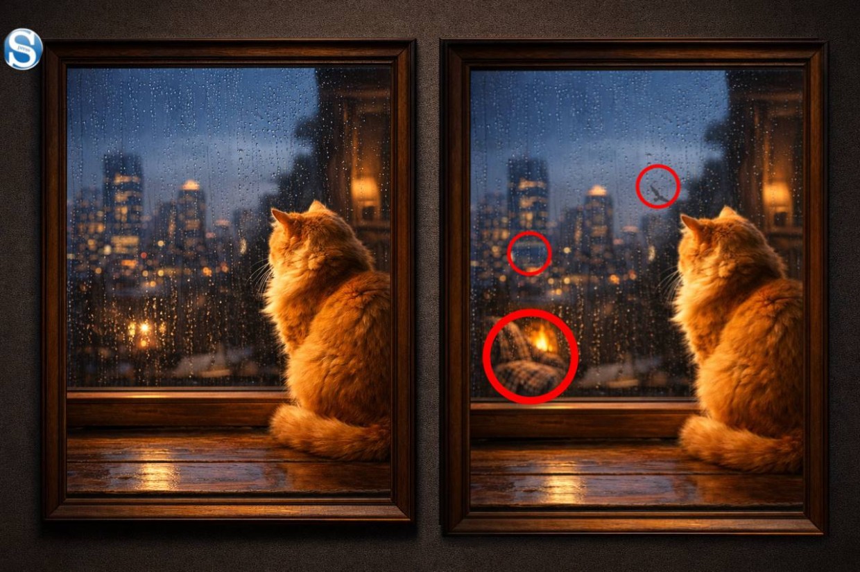 Как бы то ни было, главное — это удовольствие от процесса. Ведь наблюдать за уютной жизнью рыжего кота в дождливый вечер — само по себе маленькое счастье. Делитесь в комментариях, сколько отличий удалось найти вам и получилось ли обхитрить кота?