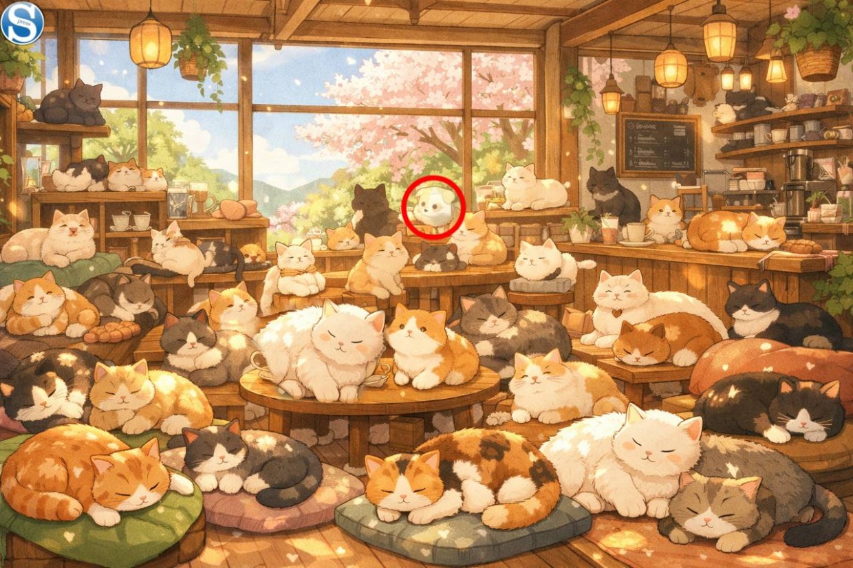 Кошачье кафе: среди пушистых мордочек спрятался щенок. Найдете за 5 секунд?