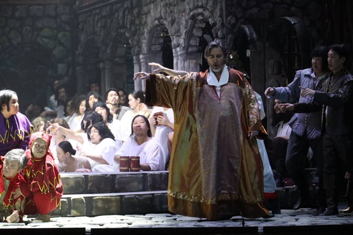 Хотелось бы обратить внимание на другого шута придворного, катающего ядра на груди, который появился в якутском спектакле благодаря постановщику Михаилу Панджавидзе. Это артист цирка Владислав Михайлов. Ему, на минуточку, 62 года, а ядра, которые он привнес в спектакль — его собственный реквизит, отлитый в Москве по индивидуальному заказу еще в 90-х годах минувшего века. Последователь Григория Новака, самого сильного человека планеты, первого в истории советского чемпиона мира по тяжелой атлетике, серебряного призёра Олимпийских игр 1952 года, Владислав, сунтарец по происхождению, учился в столице нашей родины у его сыновей Романа и Аркадия, силовых жонглеров, которые долго выступали с отцом в цирке после завершения им спортивной карьеры и поражали зрителей диковинными трюками. Долгое время диковинными трюками в Якутске удивлял и Владислав Михайлов — он выступал в цирке буквально до прошлого года. Теперь передает свое искусство молодому поколению циркачей. Посмотреть на него — хоть краешком глаза — и, конечно, на именитых артистов оперы — можно в спектакле «Риголетто» сегодня вечером, в четверг, 19 февраля.