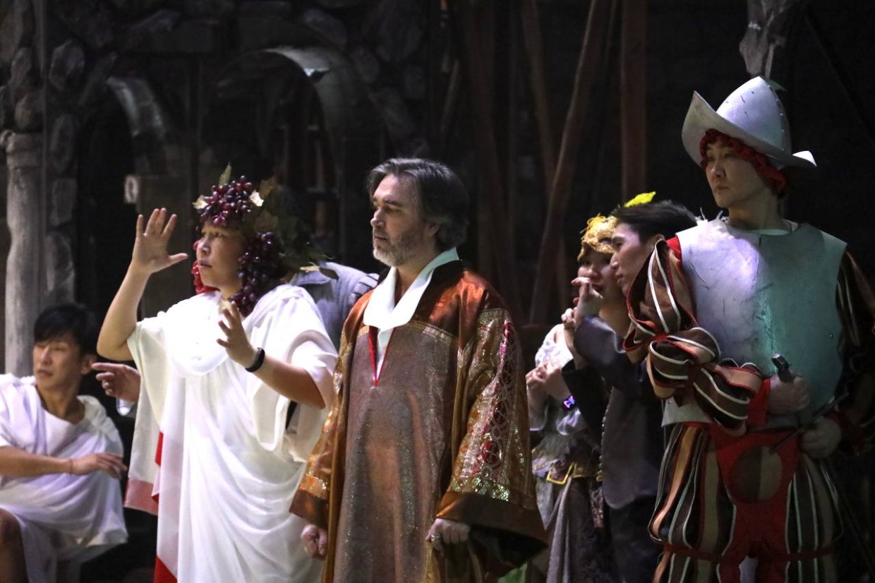 Слушая Юрия Баишева, подумалось даже, что можно было бы оставить его без грима. Как есть. В знак того, что перед нами — единственный во всем дворе персонаж с человеческим лицом. В отличие, кстати, от того же герцога, прекрасного обликом, но распутного внутри, и раскаяние, и наказание ему неведомы. Баловень судьбы.