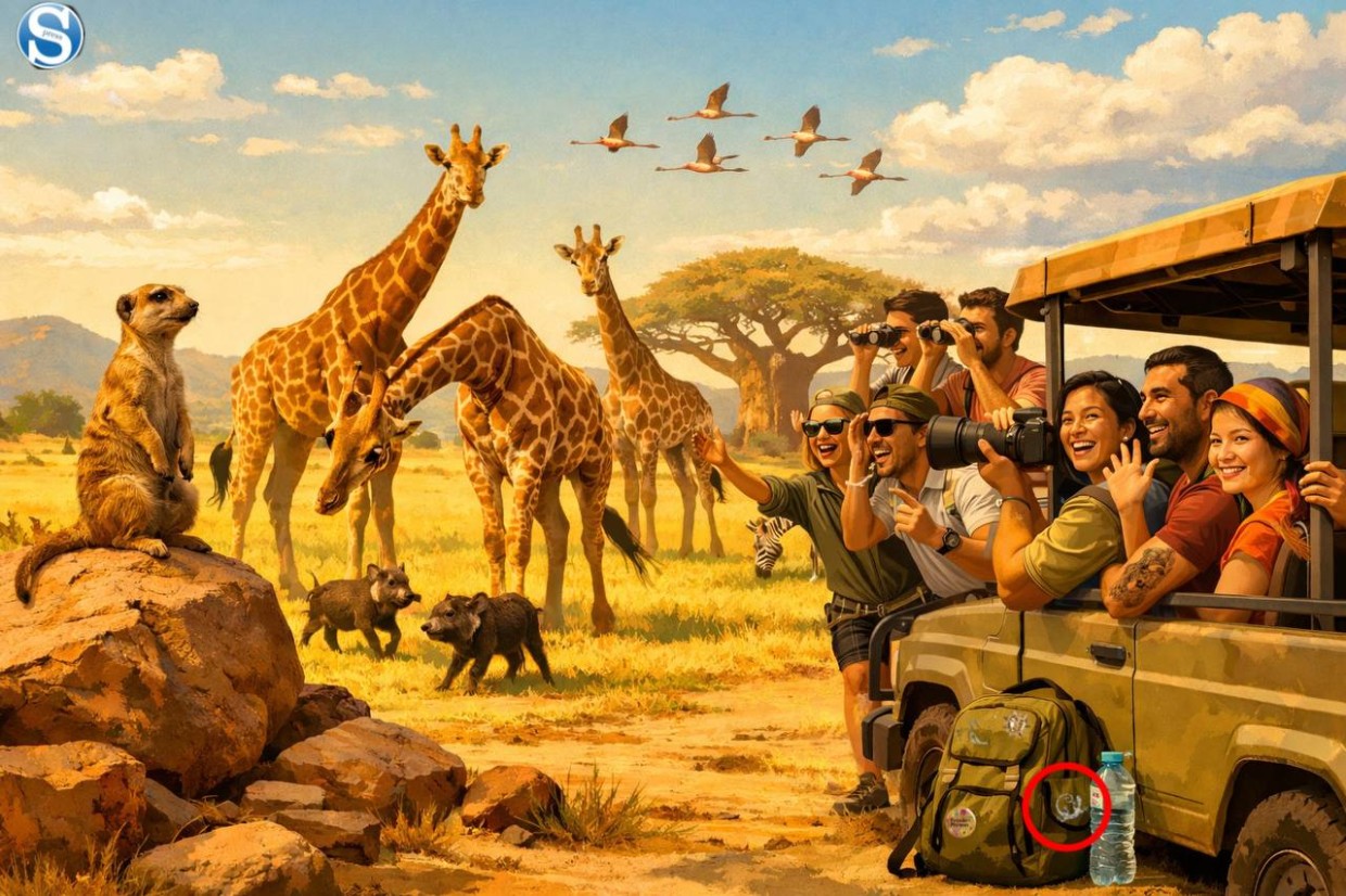 Найди ящерицу за 10 секунд: оптическая иллюзия с туристами на фоне африканской саванны