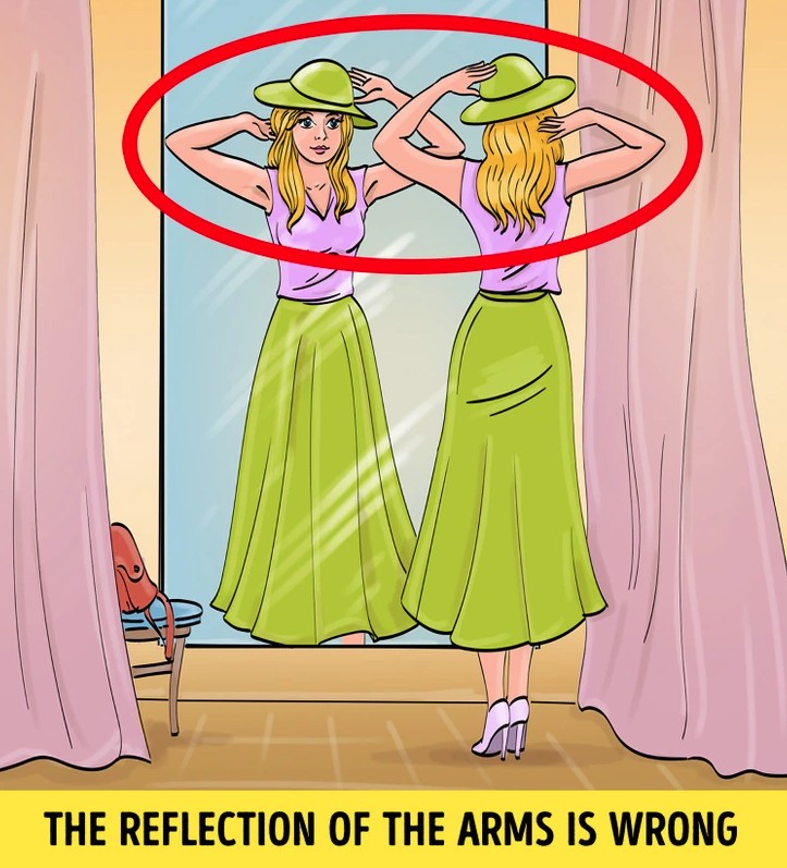 Загадка №1: Женщина вертится перед зеркалом в примерочной. Но что-то тут не так...