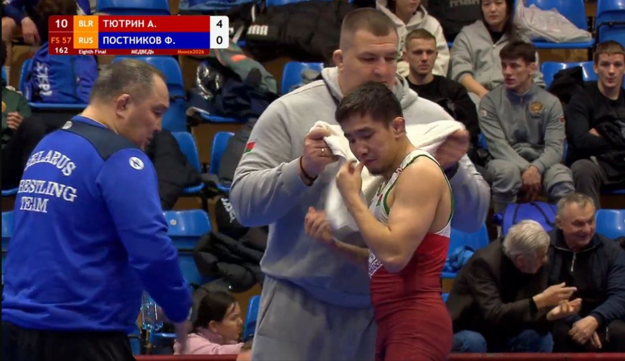 Трехкратный чемпион Беларуси, бронзовый призер чемпионатов Европы и мира Арыйаан Тютрин в весе до 57 кг выиграл на туше Данилу Юшковского (Беларусь), якутянина Федора Постникова (4:2) и еще одного белоруса Димчика Батомункуева (10:6).