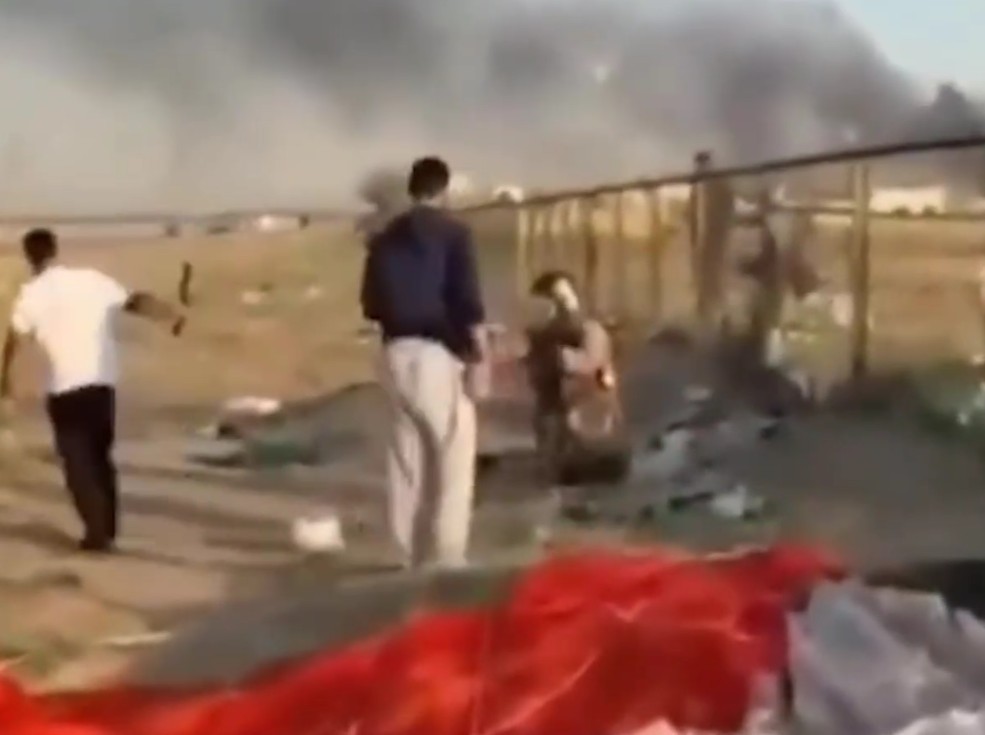 На кадрах видно, как группа мужчин с криками приближается к летчику, к которому все еще пристегнут парашют. Один из них заносит над головой пилота палку. В ответ американец кричит: «Назад, стойте!» — после чего опускается на колени с поднятыми руками и несколько раз повторяет, что он американец.