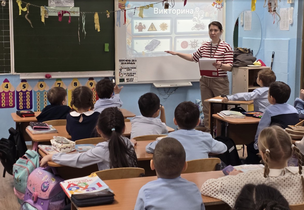 Особый интерес вызвали подвижные игры. Школьники попробовали себя в роли проводов, передавая импульсы-рукопожатия по цепочке, и дружно осваивали «гусиный шаг» — так энергетики в игровой форме объяснили, как правильно передвигаться в зоне действия шагового напряжения — опасном участке вокруг оборванного провода линии электропередачи.