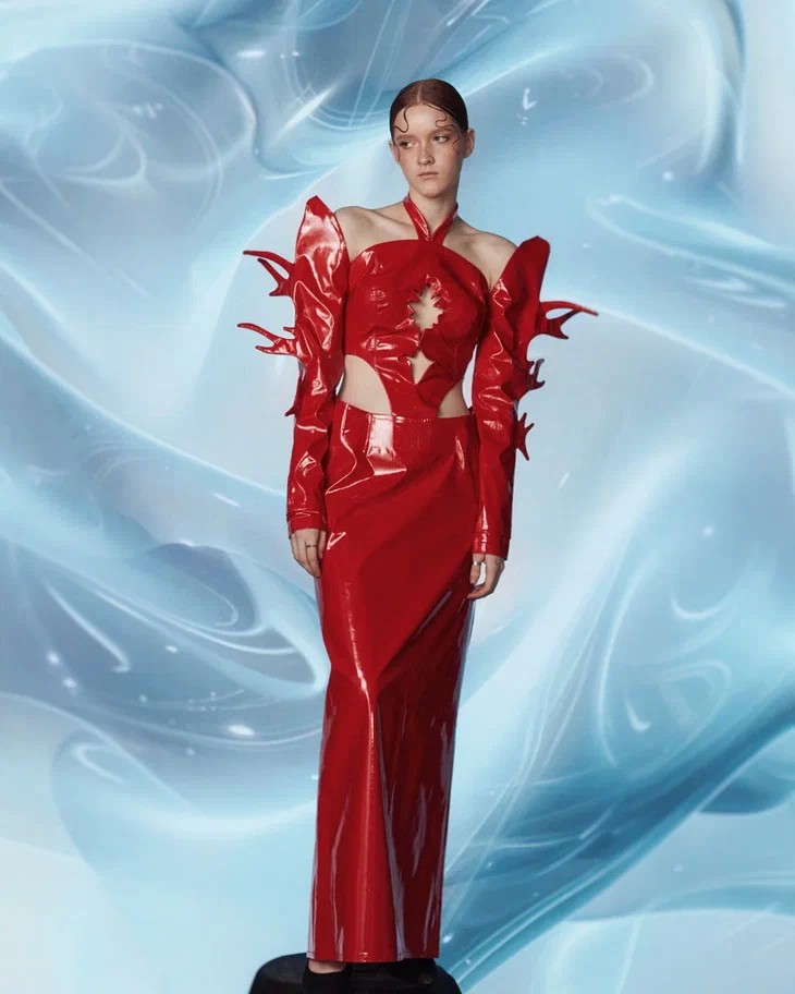 В основе коллекции — матовый шелк, хлопок, органза и прозрачные структурные материалы, создающие архитектурную лёгкость. Палитра — северная и чувственная: ледяной голубой, пыльно‑розовый, терракотовый, белый, графитовый". - поделилась дизайнер Изабелла Дордосова.