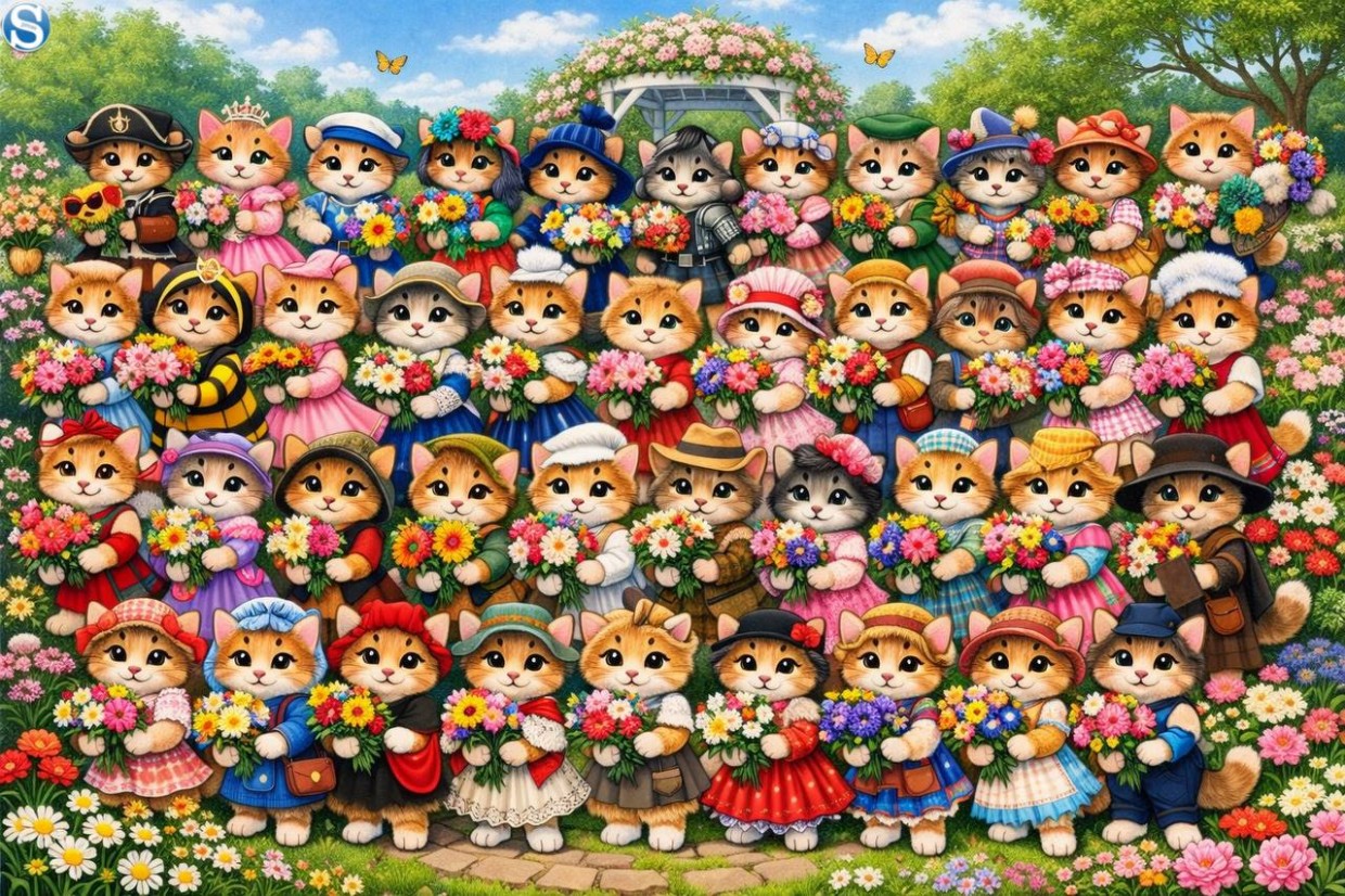 Весна вступила в свои права, и даже котики вышли погреться на солнышко и отдохнуть в парке. Здесь и рыжие, и полосатые, и пушистые — все радуются теплу. Но среди этой пушистой компании затерялась одна особенная кошечка. Вместо того чтобы играть или ловить птичек, она уютно устроилась с книжкой.