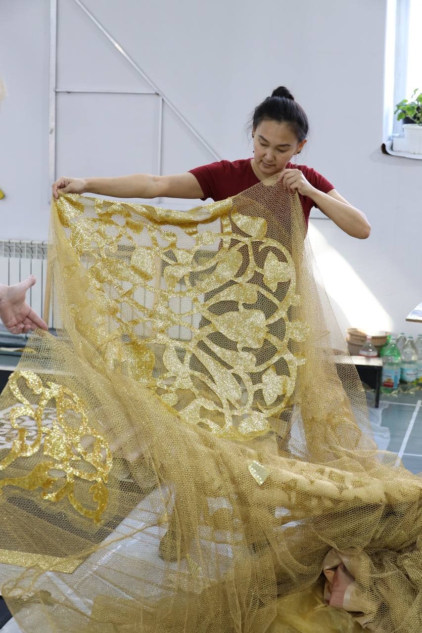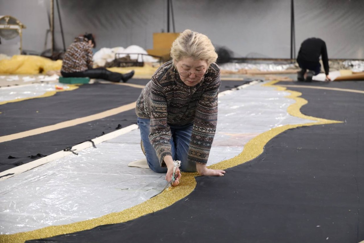 Выкроить свободную минутку из плотного рабочего графика для Саргыланы Владимировны задача непростая: до премьеры — меньше недели. Вот и трудятся производственные цеха практически в режиме нон-стоп без выходных.