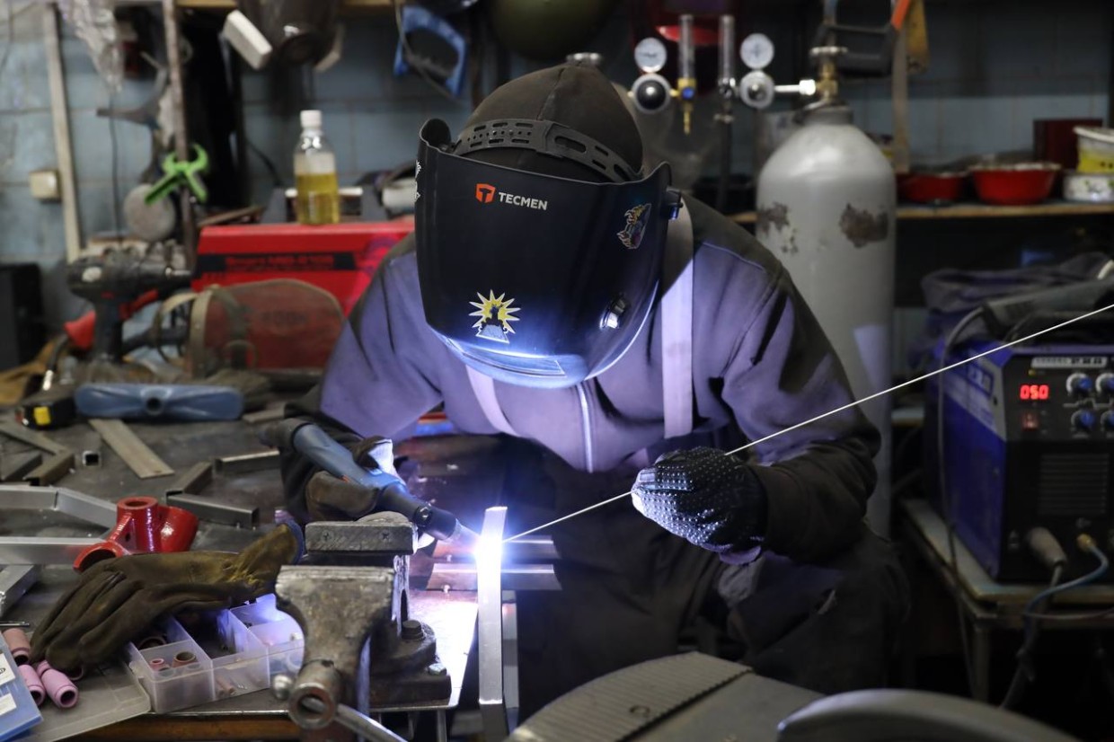 Но самая тяжелая работа — сварочная. Она на нашем замечательном сварщике Николае Никифорове: он изготовил фонари и специальные железные конструкции для колонны высотой 8 метров. Прибавьте к этому двери во дворце Шахрияра, которые вы видели в столярной мастерской у Александра Маркова и Христофора Кириллова. Из проема арки будут выкатываться столы — художнику по свету Ивану Шандровскому еще предстоит серьёзная работа, чтобы «заработали прострелы».