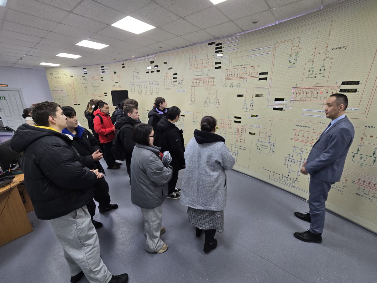 Более детально погрузиться в мир энергетики студенты из Светлого смогли во время ознакомительной экскурсии на Западные электрические сети. Организацию перевозки ребят из поселка в город энергетики взяли на себя, выделив служебный автобус. Прибыв в филиал и пройдя обязательный инструктаж по технике безопасности, первокурсники направились в центральный диспетчерский пункт ЗЭС на главный щит управления. Главный инженер филиала Жигжит Доржиев рассказал и показал, как при помощи современного оборудования в режиме реального времени диспетчер может отслеживать нормальную работу высоковольтных линий электропередачи и подстанций, а также возможные технологические нарушения в их работе. Далее будущие специалисты отправились на подстанцию 220 кВ «Мирный», снабжающую электроэнергией большую часть города и Мирнинского района. Здесь они своими глазами увидели серьезное энергооборудование открытого распределительного устройства — масляные выключатели, автотрансформаторы и разъединители. Посещение предприятия вызвало неподдельный интерес студентов. Будущие специалисты не только узнали о работе подстанции и электрооборудования, но также смогли задать интересующие вопросы и получить на них ответы.