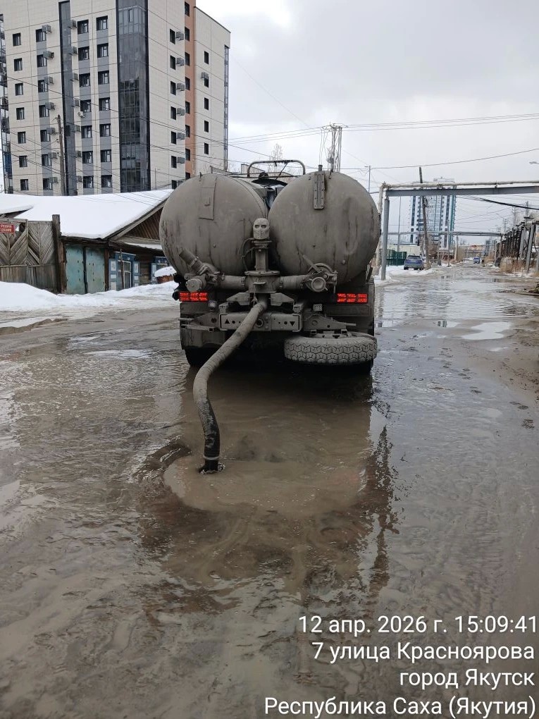 В Якутске продолжаются работы по откачке талых вод. На 12 апреля 2026 г. МУП «Жилкомсервис» откачало свыше 949 кубометров воды. В связи с увеличением объемов работ, предприятие нарастило количество задействованной техники. В этот день на улицах города вышло 15 единиц техники, из которых 5 - техника подрядных организаций.