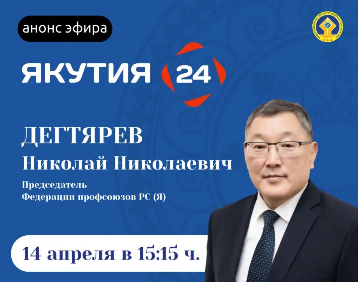 Завтра, 14 апреля председатель Федерации профсоюзов Якутии Николай Дегтярев выступит в прямом эфире передачи «Актуальное интервью».