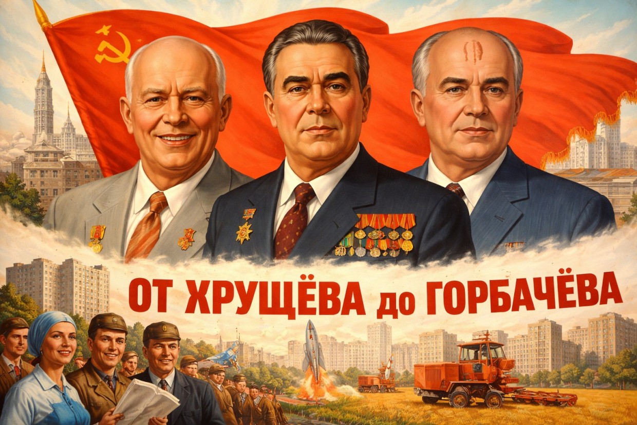 Советский Союз прошёл долгий путь от хрущёвской «оттепели» до горбачёвской перестройки. Целые эпохи, каждый лидер оставил свой след — от кукурузных полей до программ ускорения.