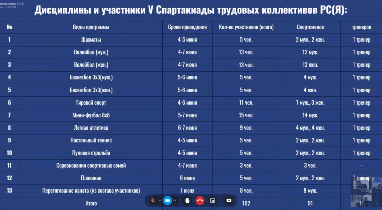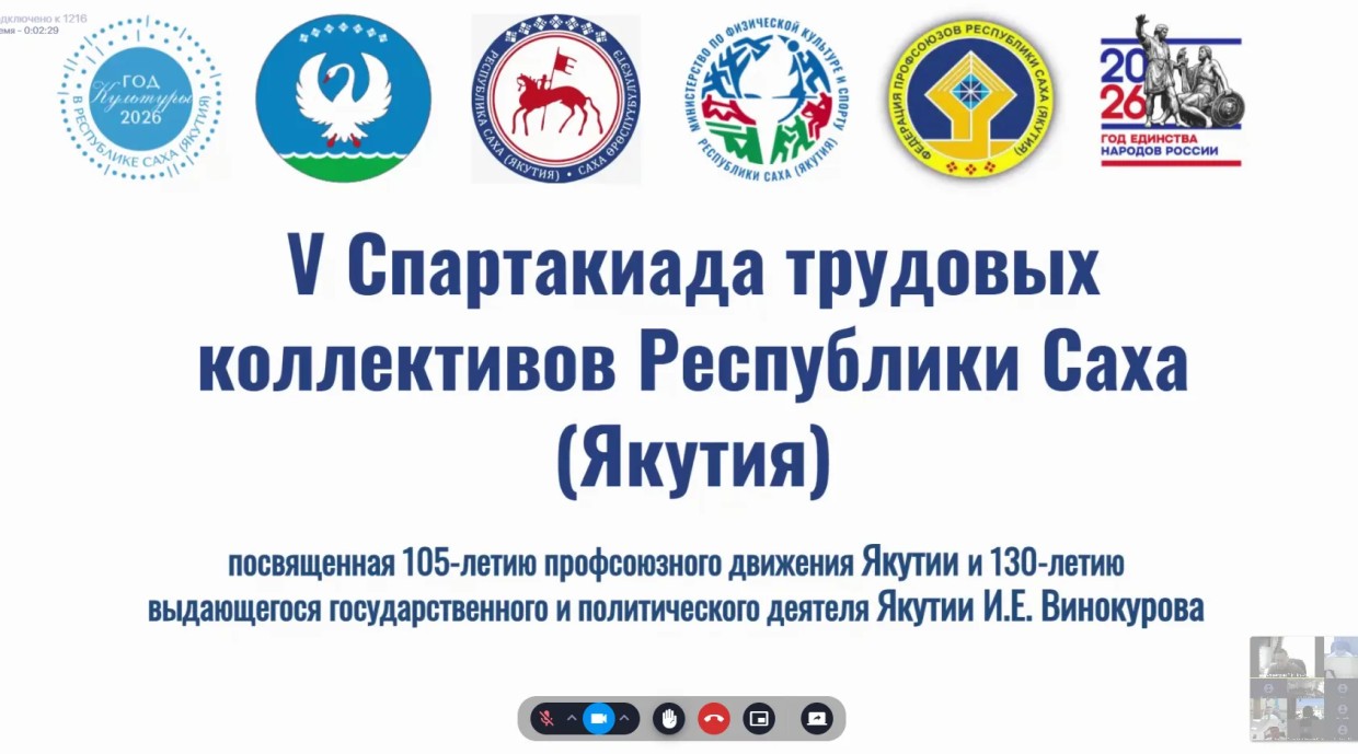 Сегодня под председательством заместителя Председателя Правительства Республики Саха (Якутия) Сергея Местникова в формате ВКС состоялось заседание Организационного комитета по подготовке и проведению V Спартакиады трудовых коллективов республики. Соревнования, посвящённые 105-летию профсоюзного движения Якутии и 130-летию выдающегося государственного и политического деятеля И.Е. Винокурова, пройдут в Якутске с 4 по 7 июня 2026 года.