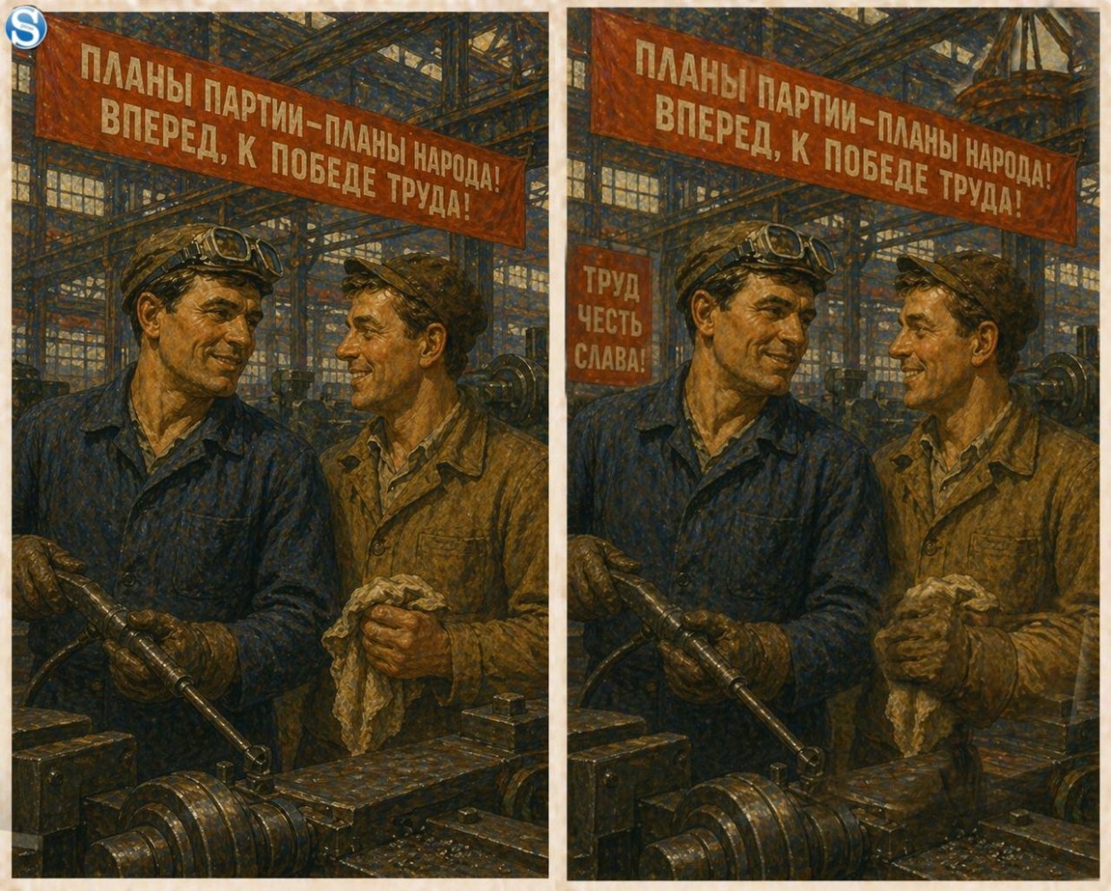 Сегодня мы предлагаем вам окунуться в атмосферу советской индустрии. На картинке — группа рабочих. Уставшие, но довольные. Сосредоточенные, но готовые улыбнуться в камеру. Рядом — станки, инструменты, яркие плакаты.