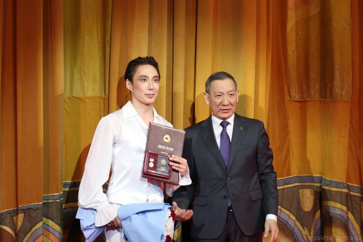 Гала-концерт порадовал изысканными блюдами, и одним из них под бурные и восторженные аплодисменты стало вручение народному артисту Якутии Сарыалу Афанасьеву Государственной премии имени Алексея Кулаковского. Любит его наш зритель. И заслуженно любит.