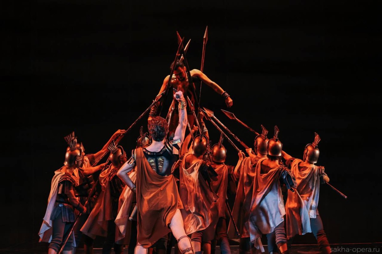На этом полотне спектакль разворачивает школу якутского балета, его высокое мастерство и профессионализм. И зрелище получилось захватывающим, тем более, что на фоне мужественности и отваги могучих воинов более отчетливо отображались хрупкость и невероятная при этом огромная внутренняя женская сила их спутниц — Эгины и Фригии, которых исполнили прекрасные артистки Венера Федотова и Мария Кузьмина.