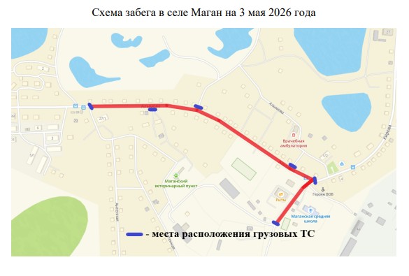 3 мая 2026 года также ограничат движение в с. Маган c 14:00 до 15:30 часов по ул. Алымова на участке от дома, расположенного по адресу: ул. Алымова, 27/1, до Маганской средней школы.