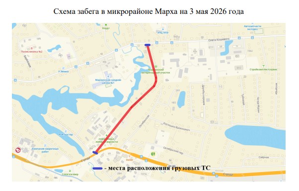 3 мая 2026 года в микрорайоне Марха ограничат движение c 10:00 до 11:30 часов по ул. Советская на участке от ул. Строда до ул. Олега Кошевого.