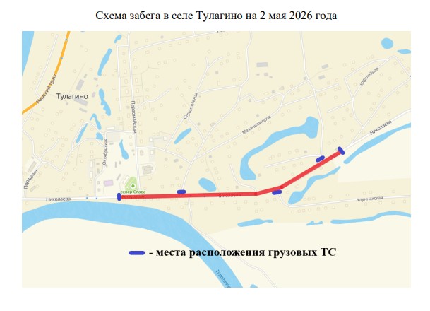 2 мая 2026 года также селе Тулагино будет ограничено движение транспортных средств c 14:00 до 15:30 часов по ул. Николаева на участке от сквера Слава Ветеранам до дома, расположенного по адресу: ул. Николаева, 51.