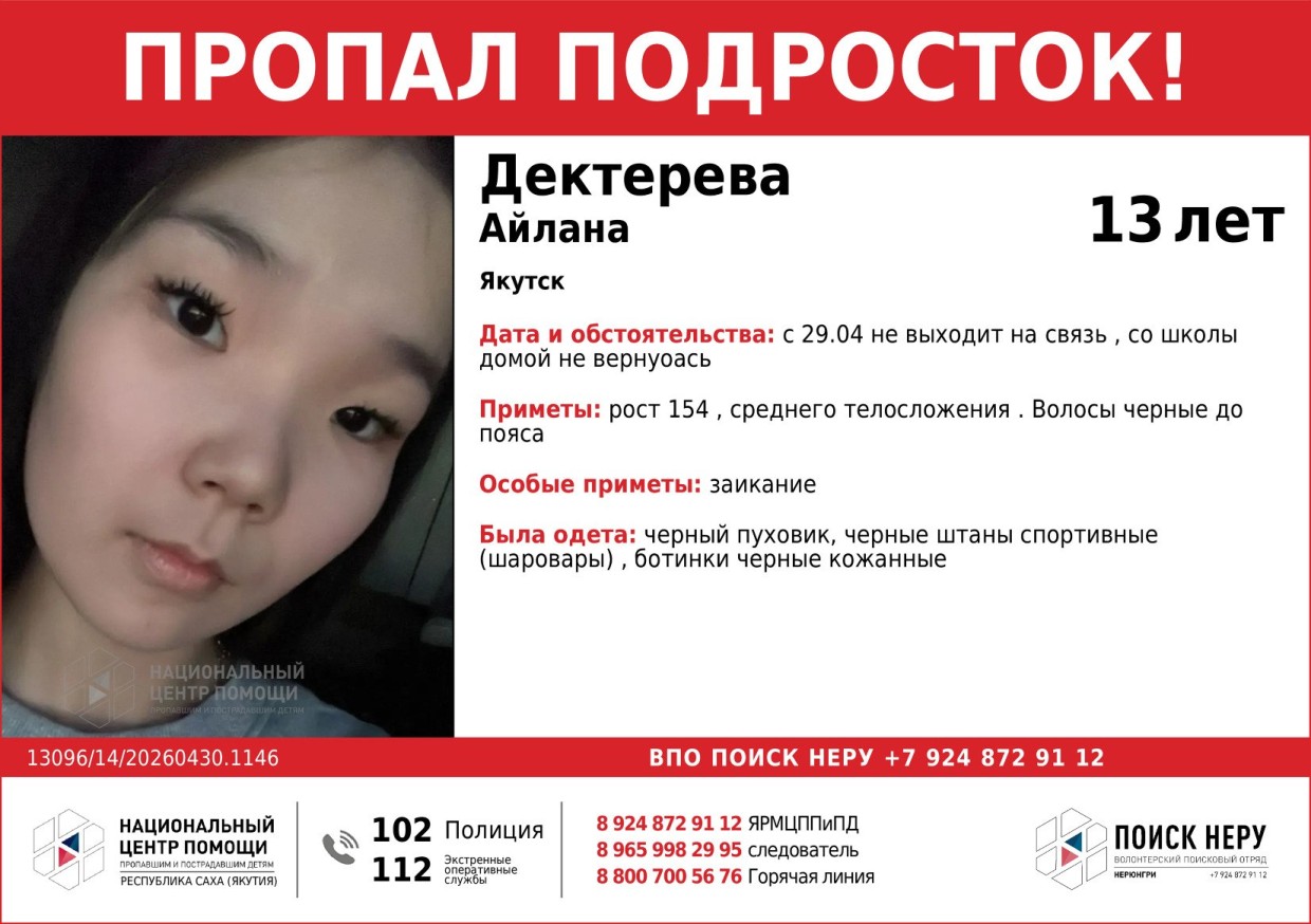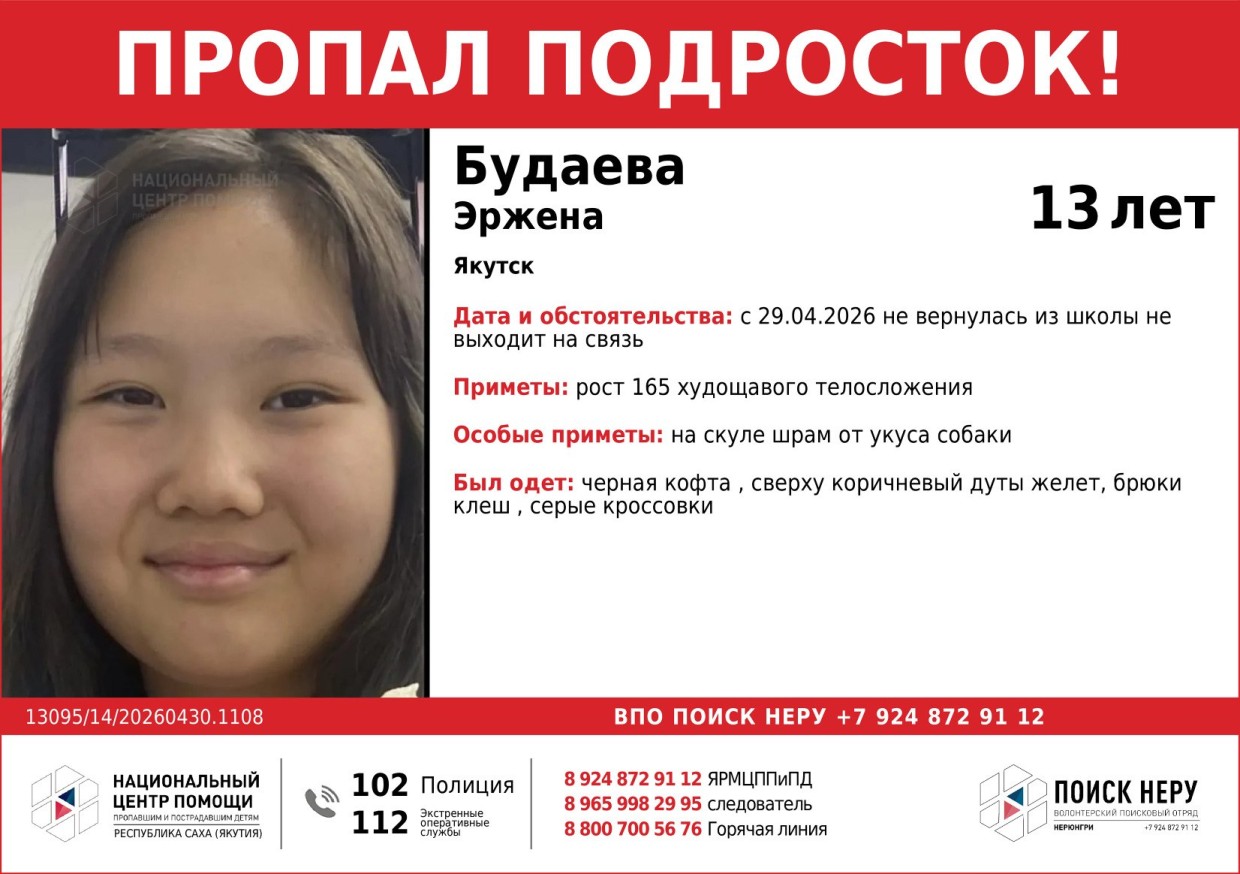 В Якутске второй день ищут 13-летних Эржену Будаеву и Айлану Дектереву: девочки пропали по дороге из школы