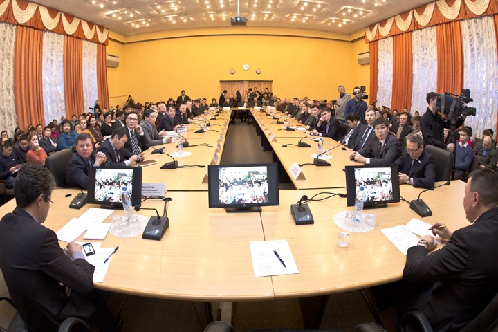 Айсена Николаева о проделанной за год работе слушали народные депутаты Ил Тумэн и Якутской городской Думы, члены Общественной палаты и экспертных советов, представители различных общественных объединений столицы, ее округов и пригородов, СМИ, жители Якутска. Как и в округах, после основного доклада отчет перешел в формат диалога.