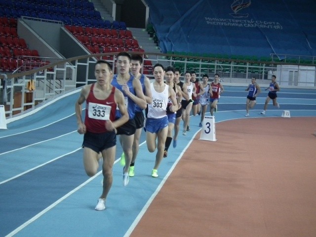 Лидирует чемпион на 3000 м Дмитрий Степанов Вернемся к рекордам. Напомню, в некоторых дистанциях у нас зафиксированы по четыре рекорда установленные (1) ручным и (2) автоматическим хронометражем в (3)помещении и на (4)стадионе. Первым в первый день чемпионата сокрушителем рекорда республики в помещении стал уроженец Хангаласского улуса, на сегодня, безусловно, лучший прыгун республики, рекордсмен республики по якутским прыжкам кылыы (48 м 48 см), действующий чемпион России среди студентов в помещении по тройному прыжку