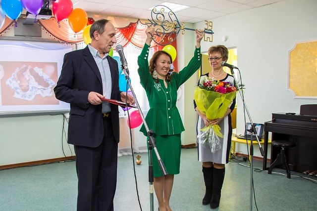 Залы оснащены современным оборудованием для занятий – интерактивной партой, проектором и интерактивными досками. В просторных игровых группах и спальных помещениях все рассчитано для комфортного пребывания детей. Создатели дизайна помещений творчески подошли к проекту, и весь стиль выдержан в соответствии с названием нового объекта: светильники подобраны в виде звездочек, барельефы на стенах коридоров оформлены по сюжетам северных и русских сказок. Строительство объекта было начато в 2013 году. Работы проведены качественно и в срок. Глава вручил почетные грамоты и благодарственные письма за вклад в социально-экономическое развитие столицы республики и за активное участие в строительстве объекта тем, кто внес вклад в возведение и обустройство нового детского сада в городе.