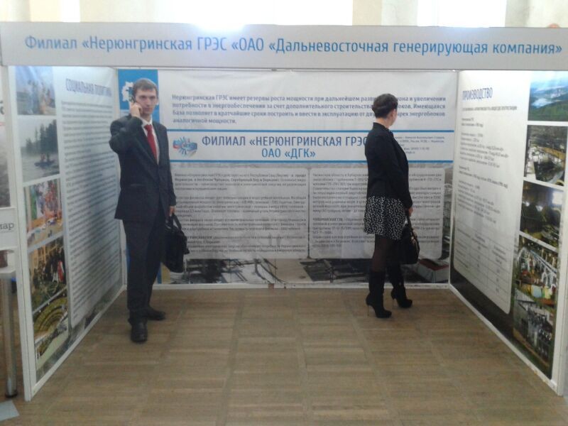 РИГ SAKHAPRESS.RU Энергетики филиала «Нерюнгринская ГРЭС» ОАО «ДГК» (входит в состав холдинга «РАО ЭС Востока») приняли участие в первом Нерюнгринском бизнес-форуме «Южная Якутия. Стратегия на опережение. Инновации в будущее», который состоялся 17-18 апреля 2014 г. в городе Нерюнгри. Главной целью форума стало обсуждение возможностей и путей реализации бизнес-планов и привлечение инвестиций для создания в Нерюнгринском районе разнообразной отраслевой экономической базы: новых производств, новых рабочих мест. В рамках форума в целях ознакомления гостей с инфраструктурой Нерюнгринского района была организована выставка: достижения науки и техники, инновационные технологии, инвестиционные банковские продукты, промышленность и бизнес. На выставке была представлена и Нерюнгринская ГРЭС.